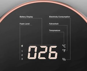 Écran LED Intelligent : Affiche la température ambiante et le niveau de batterie en un coup d’œil.
